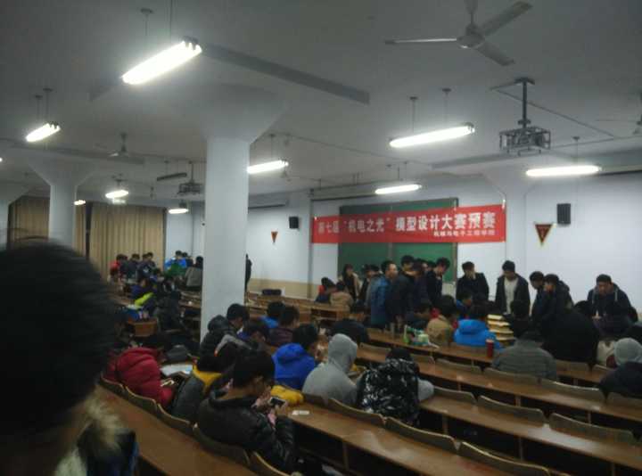 11月28日,机电学院于东校区图书楼204举行机电之光模型设计大赛预赛,傍晚6:50,参赛选手已在指定区域就座,等待比赛开始。