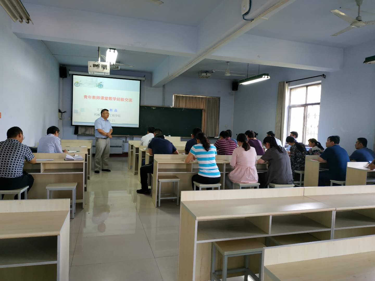 学院组织督导组老师、院领导、全院教师走进课堂,认真听课、评课;团委组织召开17级和18级学生学业座谈,了解学生在学习和生活中的情况并答疑解惑;学院组织青年教师参与课堂授课技能经验交流会,郭晶老师作为学校青年讲课技能比赛一等奖获得者,为学院中青年教师上了一次示范课,内容讲解精彩,课件制作精良,以切身体会对课堂教学技能、讲课比赛的要求进行了深入细致的讲解:课前精心备课,课上精彩讲授,课后及时答疑。全院20余位青年教师被深深吸引;组织专业主任对学院新进教师听课及帮扶制度的检查落实,了解新进教师的思想动态和工作情况,更快更好融入学院的教学工作中。