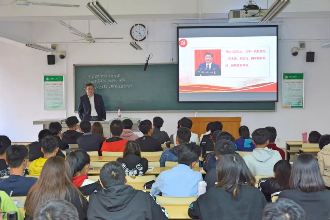 党课伊始,肖书记简要介绍了开设本次党课的目的与意义,并带领同学们认真学习了19大报告的主要内容。随后他从中共成立背景、中国共产党人的初心使命、练就过硬本领担当民族复兴大任三个方面展开了本次党课教育。肖书记通过讲述毛泽东与毛岸英两代人的奋斗故事,指出中国共产党的使命是一代代人传承下来的,并且用郭永怀的事迹告诉同学们“有多大格局就有多大成就”。同时告诫同学们生活中可以有“小确幸”,但不要让这些“小确幸”左右我们自己,因为我们是有理想有抱负的当代大学生,并嘱托大家做一名新时代青年,以德立身,刻苦学习,担当时代的责任。党课最后,肖书记对同学们提出了三点要求:一是胸怀崇高理想,做好为国家为人民奋斗的准备;二是通过刻苦学习练就一身过硬本领;三是珍惜当下生活,担当复兴大任。