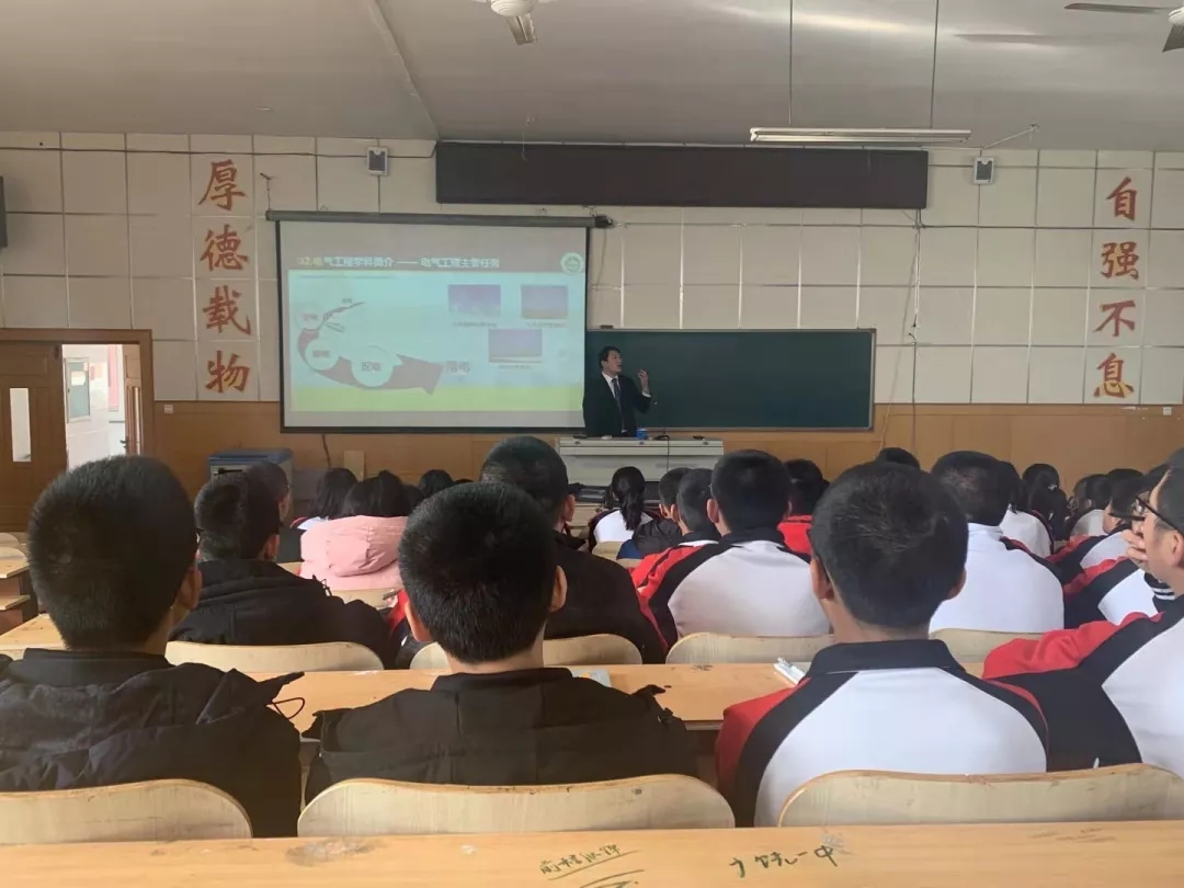王冉冉老师从专业认知的角度,向高中一年级学生们推荐和介绍了电气类专业,从专业类的课程设置、发展前景、学习本专业的优势和劣势、学生素质要求、高校选课等方面进行了宣讲。最后王冉冉老师从学校历史、办学格局、人才培养等方面介绍了学校情况,以“为什么要上大学、上大学有哪些途径、怎样备考招生”为线,介绍了我校招生情况,以“今天,青春是用来奋斗的,将来,青春是用来回忆的!”为结语,鼓励学生们上好大学,以便获得更多人生出彩的机会。