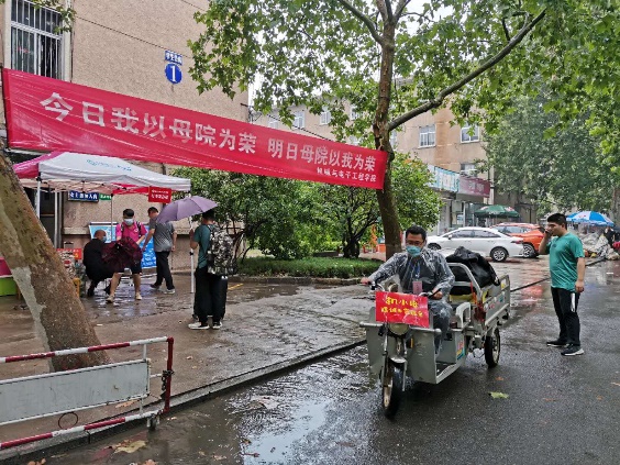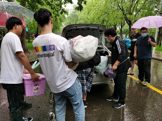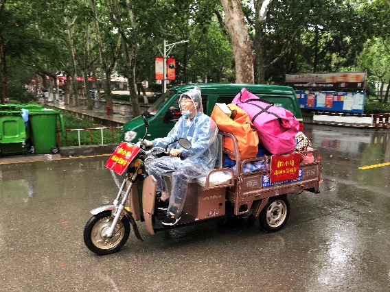 为了给学生提供方便、快捷、安心的服务,学院领导牵头,教职工自愿报名组成爱心服务车队,免费为学生运送行李,接送到站。细雨下,学生志愿者组成爱心摆渡车队,骑电动三轮车一趟趟穿行在校园中,“机小电竭诚为您服务”诠释了满满的兄弟姐妹深情。