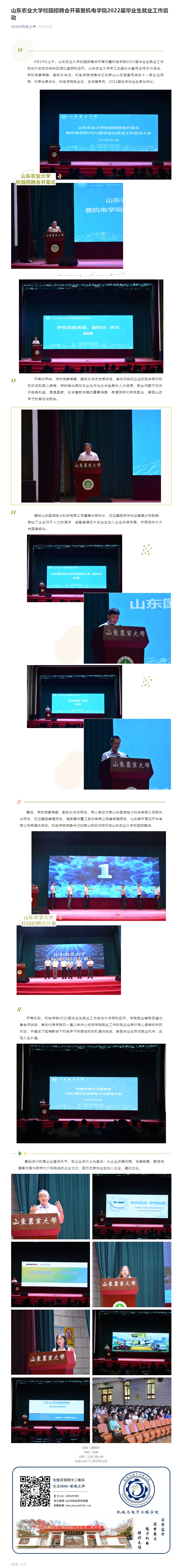 山东农业大学校园招聘会开幕暨机电学院2022届毕业生就业工作启动