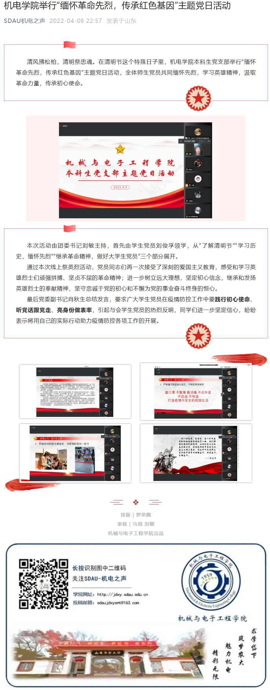 机电学院举行“缅怀革命先烈,传承红色基因”主题党日活动