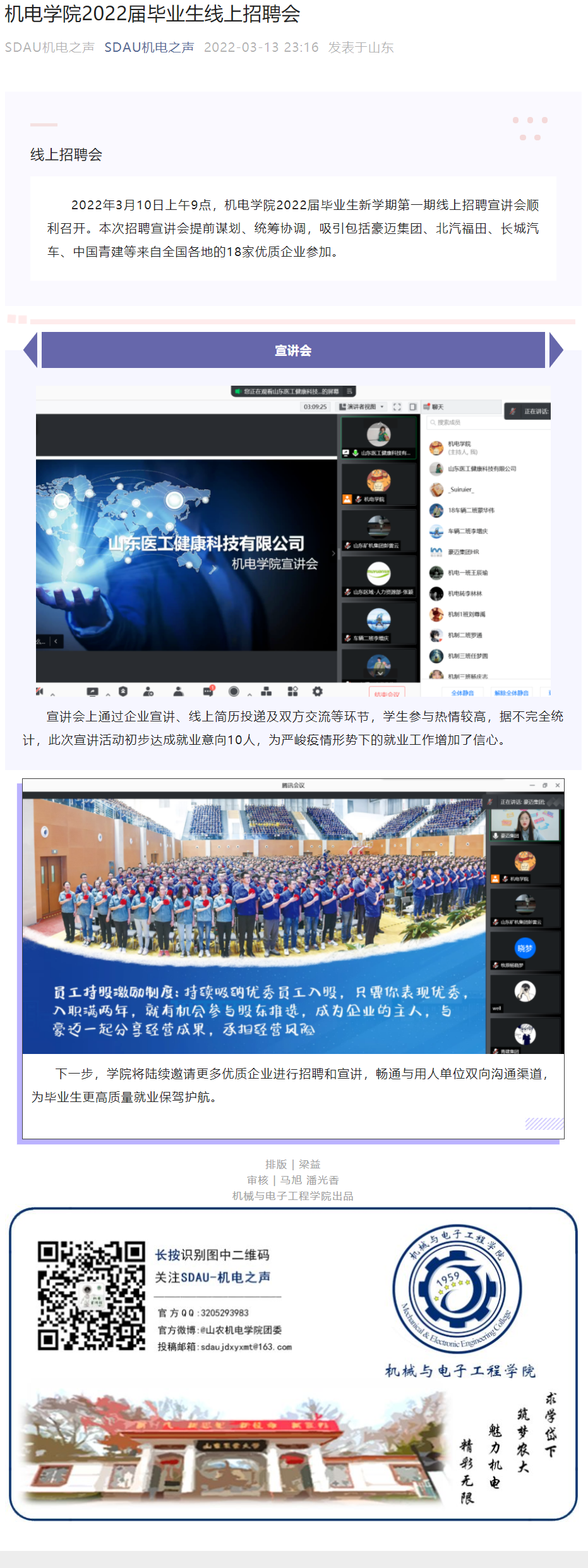 机电学院2022届毕业生线上招聘会