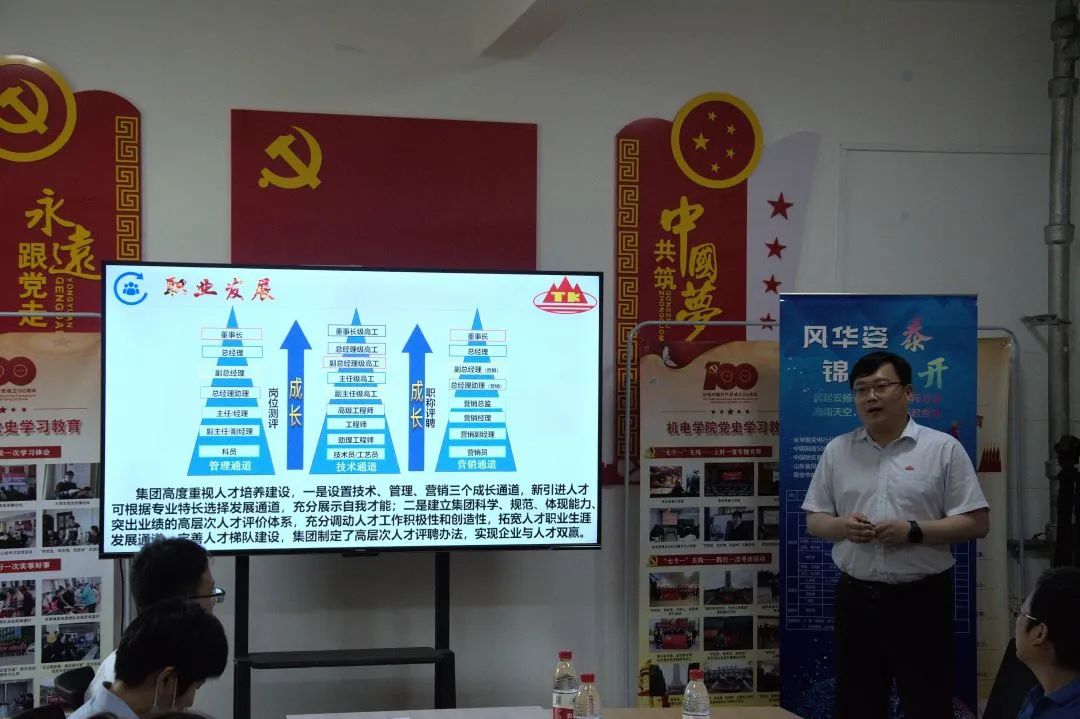 会上,泰开集团人力资源代表从“集团简介”招聘计划”“发展前景”“薪酬保障”等方面详细介绍了集团信息,并现场对同学们的疑问进行解答。刘真部长详细介绍了集团技术、管理、营销三个成长通道以及人才评价体系,诚挚邀请广大毕业生加入泰开集团干事创业,实现人生价值。
