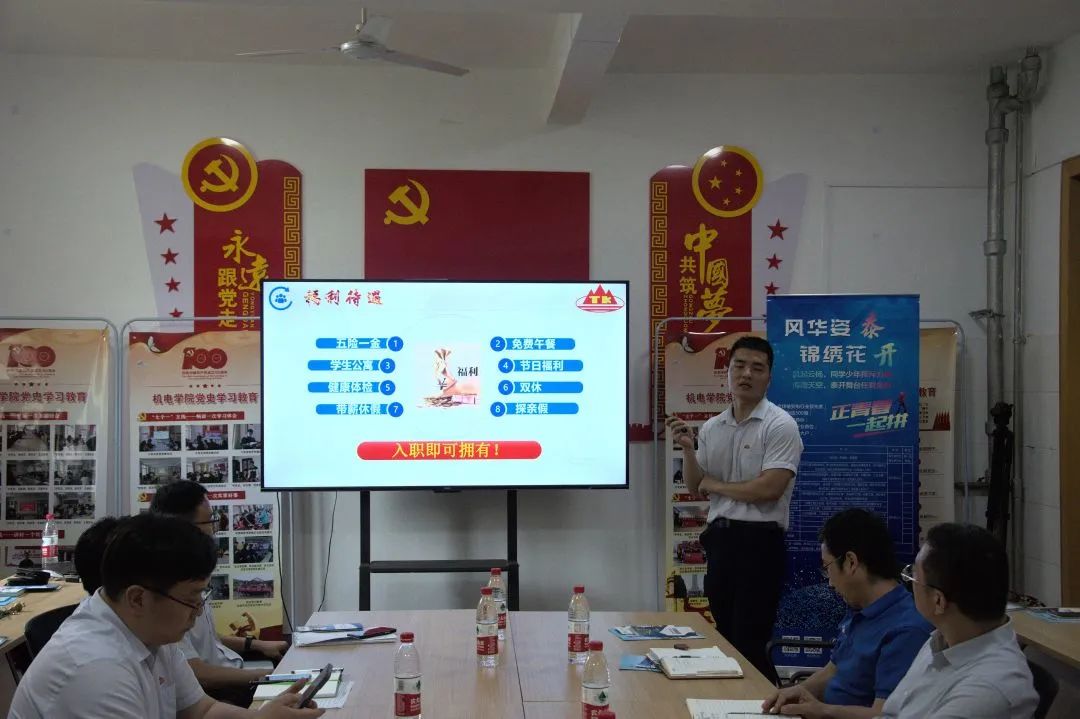 为进一步深化校企合作,切实做好2022届毕业生的就业工作,为毕业生提供更优质的就业平台与岗位,6月9日下午,泰开集团专场招聘会于岱宗校区8号楼319举行,泰开集团人力资源部部长刘真、各分公司招聘负责人,机电学院党委副书记肖秋生、副院长王金星、电气系主任刘双喜、学院辅导员出席此次招聘会。