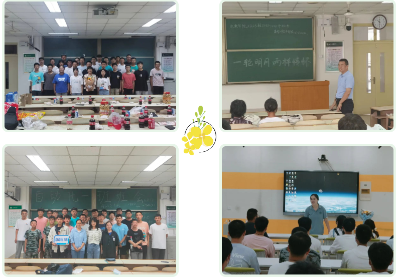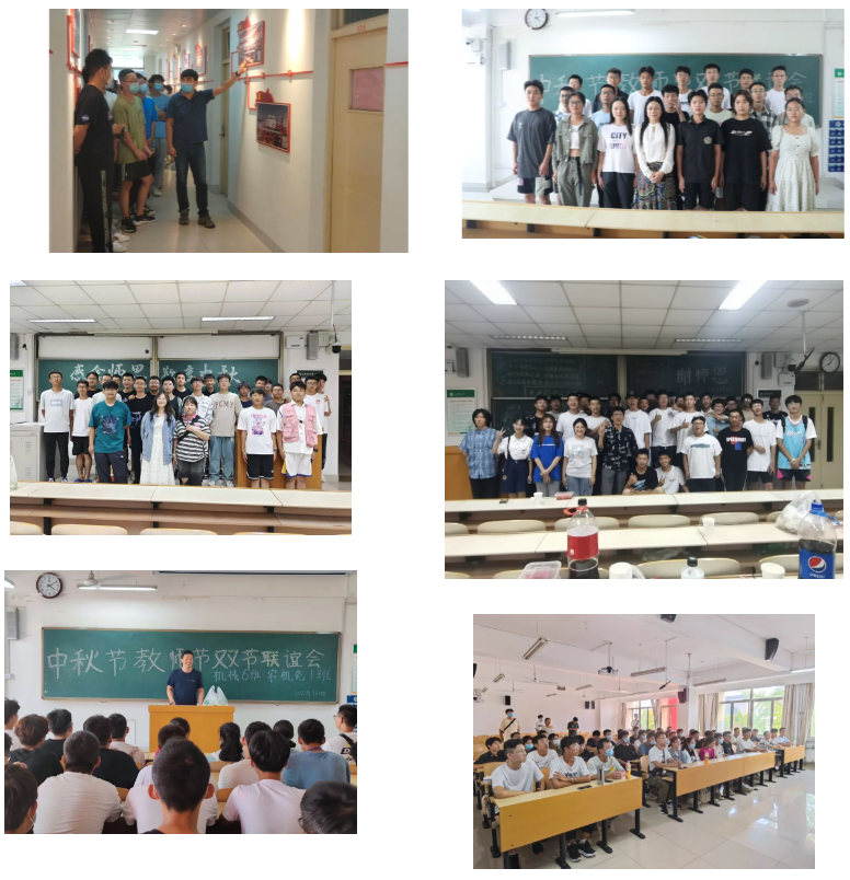 团圆中秋节,铭恩教师节。两样情怀,一轮明月。机电学院以班级为单位,班主任老师与学生共度佳节,学院、老师们为新生同学准备了月饼和水果,表达对学生中秋佳节的问候,同时寄予同学们在大学四年生活中登高必自、奋勇向前的期望;同学们则用丰富多彩的节目展现了山农学子积极向上的精神风貌,也表达了对老师节日的美好祝福。