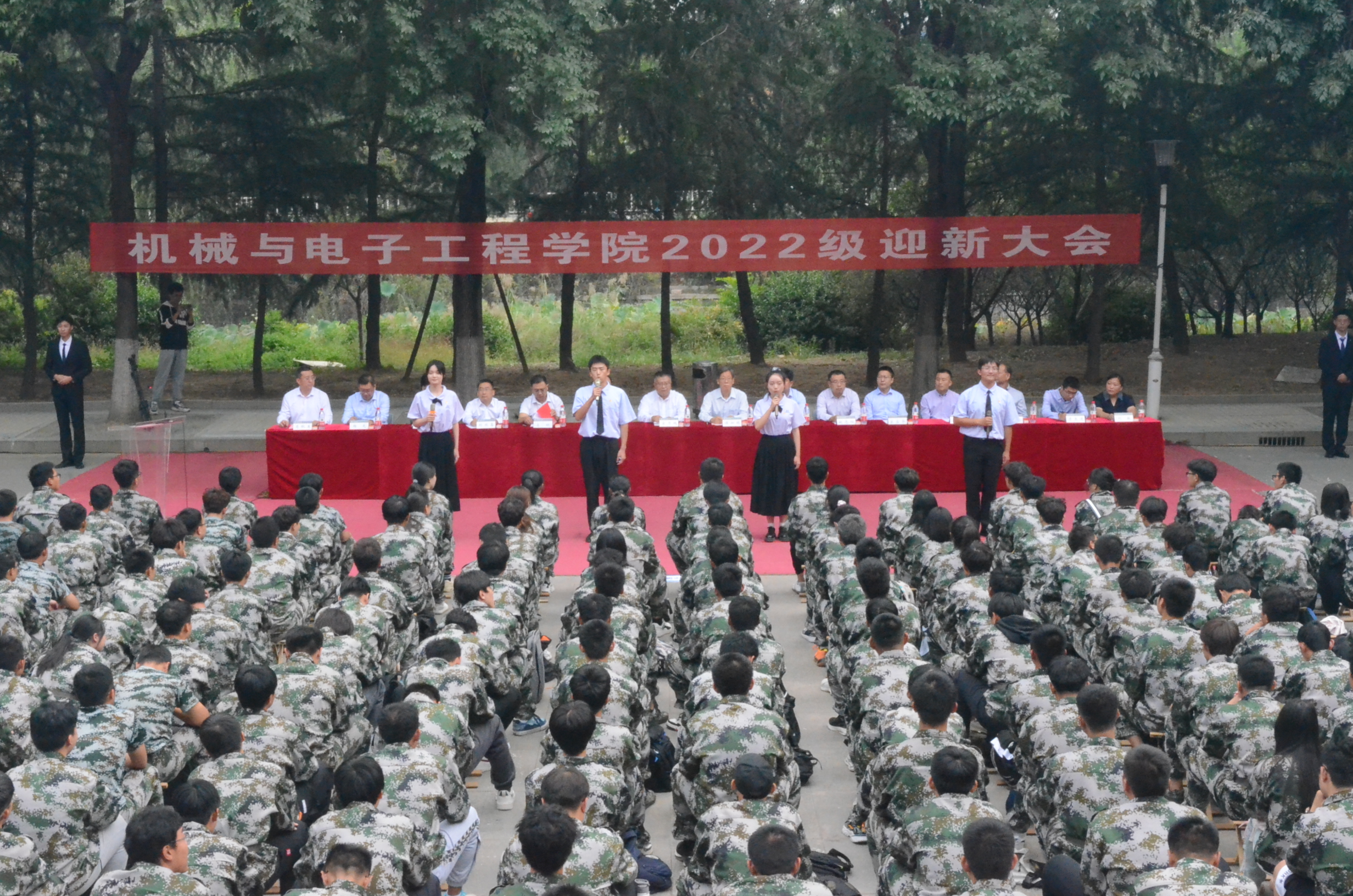 9月27日下午,机电学院在泮河校区隆重举行2022届新生迎新典礼。出席此次大会的有学院院长侯加林,党委书记刘希山,副院长宋月鹏、赵志桓,教授委员会主任刘平,农机系主任宋占华,机制系高明,车辆工程系李玉华,电气系主任刘双喜,自动化系主任张传洋,电子中心主任施国英,机械中心主任李玉道,学院组织员、办公室主任杨光,学院团委书记刘敏,学院辅导员以及2022 级全体新生,党委副书记肖秋生主持迎新典礼。