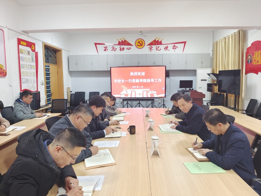 教务处处长谢胜利,副处长董岳陪同调研。学院班子领导、各系主任、团委书记,办公室主任参加调研座谈会。