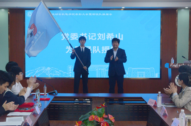 会上,党委书记刘希山为学院田径队授旗,党委副书记肖秋生为新一届田径队队长兼短跑项目组组长付奕欣、长跑项目组组长付明朗、抛掷项目组组长王耀辉、跳跃项目组组长李存娟颁发聘书。