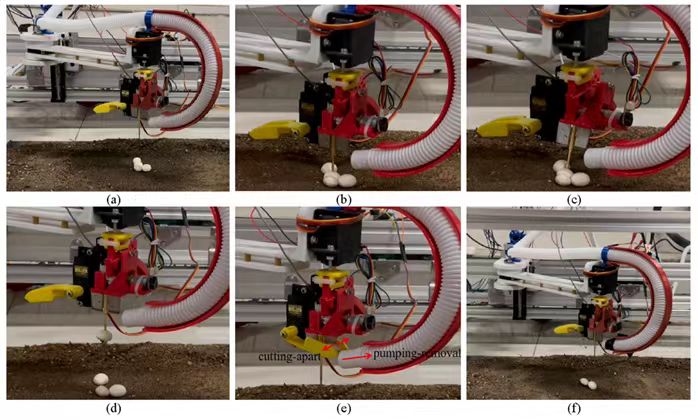 双孢蘑菇是目前世界上栽培最广泛、产量最多、消费最多的食用菌。双孢菇疏蕾环节需要大量人工作业,费时费力,成本高,限制了双孢菇产业的规模化发展。菇蕾生长在栽培床上,作业空间有限,对疏蕾模式和末端执行器的设计提出了极高的要求,一直是世界双孢菇产业发展的卡脖子技术。该研究针对菇蕾生长密集、目标小、疏蕾时不能损伤其它菇蕾、菇床不能有残留和疏蕾后丢弃的特点,在国际上首次提出了一种新疏蕾模式,并创新设计了一种新型的双孢菇疏蕾末端执行器实现低损伤、高效疏蕾。通过疏蕾动态过程有限元分析,明确了疏蕾过程中末端执行器部件-菇蕾-基质的分离机理,优化了末端执行器的结构设计和作业参数,对提升疏蕾性能具有重要的理论依据。