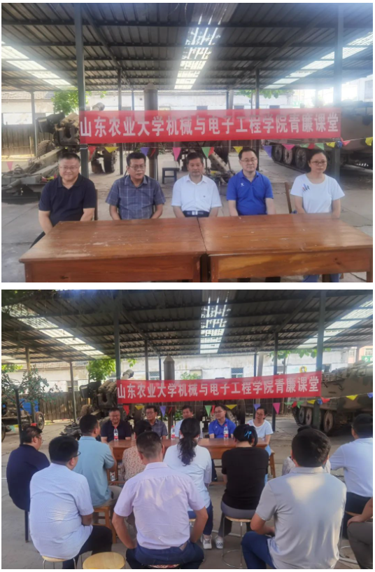 参观和调研活动结束后,在解放军退役武器装备展厅开展了山东农业大学机械与电子工程学院清廉课堂,学院党委书记傅臣家从探寻中国传统文化中的廉洁基因入手,讲解了党的二十大报告中关于党风廉政建设和反腐败斗争的重要论述,针对典型警示案例进行深入分析,并提出了三点要求:一要提高政治站位,深刻领会“两个确立”的决定性意义,增强“四个意识”、坚定“四个自信”、做到“两个维护”。二要要求大家防微杜渐,引以为戒,不断筑牢理想信念的压舱石。三要认真履职尽责,模范遵章守纪,主动为师生排忧解难,为学院高质量发展保驾护航。学院院长王金星主持会议要求全体教师落实立德树人根本任务,守住法律底线,懂得真善美,辨别假恶丑,养成遵纪守法、崇廉尚洁的好习惯,引导学生清白做人,诚信做事,树立正确三观,不负青春韶华,扛牢从思政课程到课程思政全课程廉洁教育的责任担当,做廉洁文化的引领者,大学生廉洁教育的宣讲者,风清气正校园治学环境的守护者。