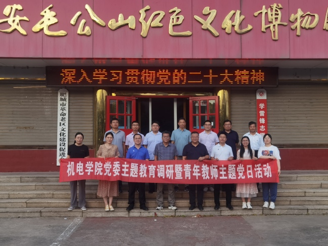 按照学习贯彻习近平新时代中国特色社会主义思想主题教育工作安排,不断从党的光辉历史和红色根脉中汲取接续奋进的强大力量,七一当天,机电学院组织部分青年党员和部分青年博士赶往肥城市毛公山红色文化博物馆开展主题教育调研暨青年教师主题党日活动,机电学院全体院领导、部分系(中心)主任参加活动。