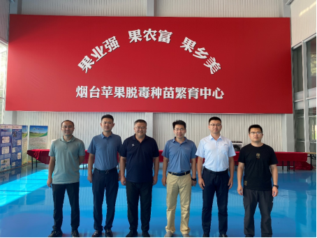 宋月鹏教授在烟台农科院植环所副所长王洪涛副研究员的带领下,参观了苹果脱毒种苗繁育中心及科研试验田,就果园管理机械与智能化设备研发示范、智慧果园创建等合作内容进行了深入交流研讨。