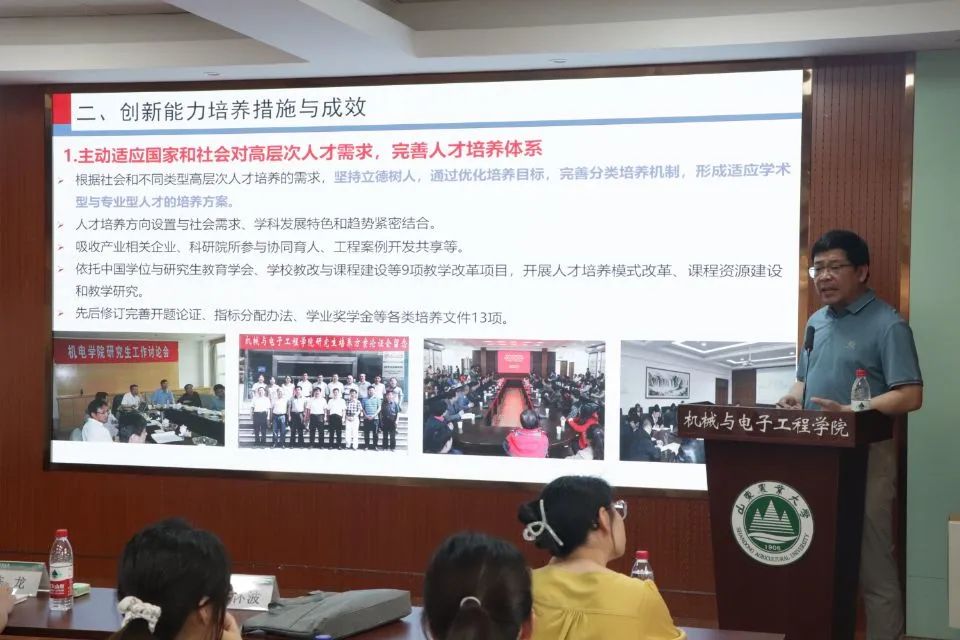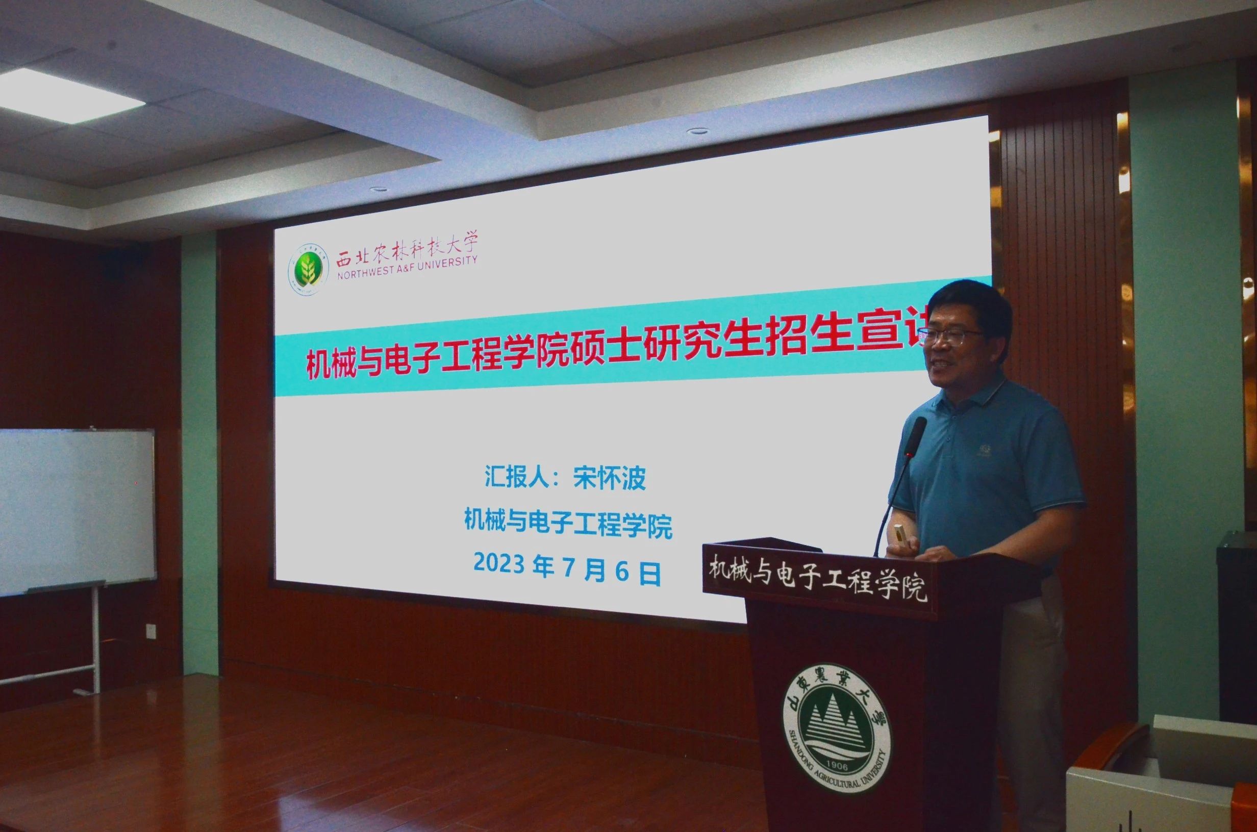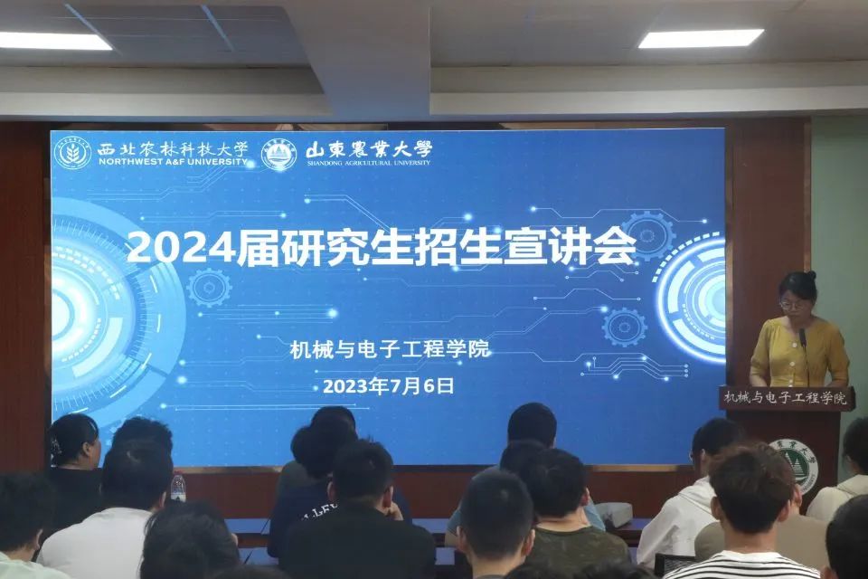 西北农林科技大学机电学院宋院长向同学们介绍了学院的师资力量和科研团队、研究生的奖助体系、研究生的培养和管理模式、历年研究生的就业状况及学院未来的发展趋势等。