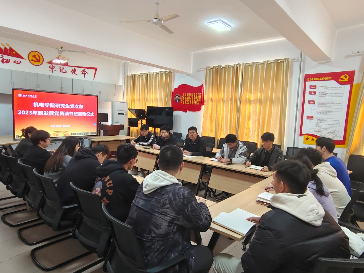 为深入学习贯彻习近平新时代中国特色社会主义思想和党的二十大精神,进一步提高2023年新发展党员的思想认识、政治觉悟和党性修养,机电学院于11月22日至12月19日举办了2023年新发展党员读书班。