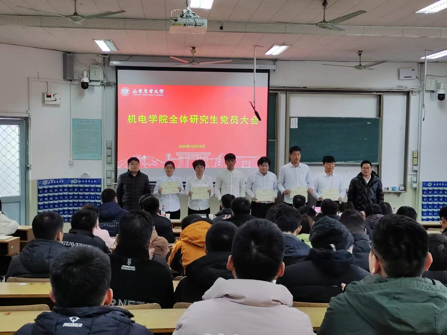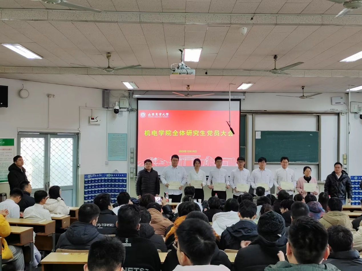12月19日下午,在学院全体研究生党员大会中,研究生第二党支部书记刘树峰、第三党支部书记刘林为全体学员颁发了结业证书。