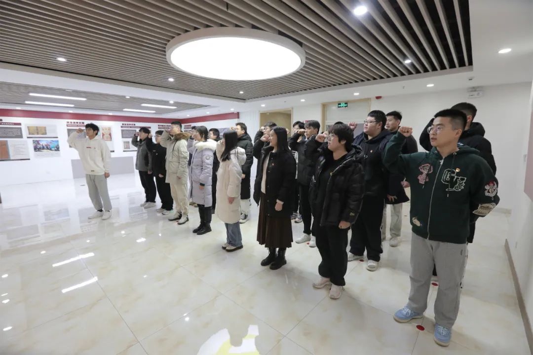 12月19日上午,读书班全体学员及研究生党支部支委会成员来到泰安主题党日活动中心开展“学思践悟新思想,踔厉奋发建新功”主题党日活动。大家面对党旗,列队整齐,高举右拳,重温入党誓词。通过学习党史、走近党史,重温激情满怀、英勇奋进、感人至深的历史故事,追随着革命先烈们的红色足迹,从一幅幅生动图片、一件件历史实物回顾了党团结带领人民进行艰苦卓绝的斗争,深切体悟到一代代共产党人的理想信念和伟大情怀。