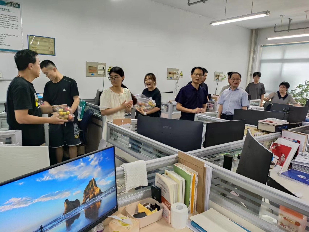 "机"遇岱下,研途漫漫苦相励,"电"启未来,学海悠悠勤奋楫!当毕业季遇上端午节,幸福“粽”是情谊,甜蜜“果”送福气,假期邻近,分别在即,学院院长王金星、党委副书记杜洪涛、院长助理郭晶、办公室主任孔庆国等领导老师于6月7日下午前往每个研究生学习室,为毕业生和在校生送上粽子和水果,带给大家最真挚的祝福。