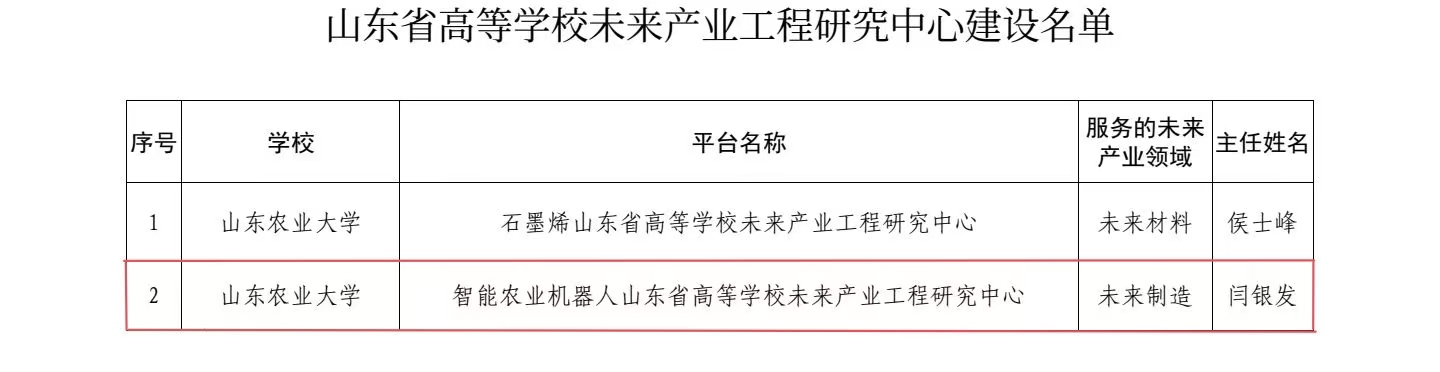 近日,山东省教育厅、山东省工业和信息化厅公布了山东省高等学校未来产业实验室和未来产业工程研究中心建设名单,我院牵头申报的“智能农业机器人山东省高等学校未来产业工程研究中心”成功获批建设。