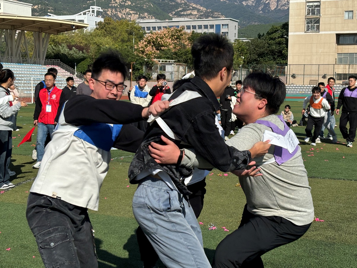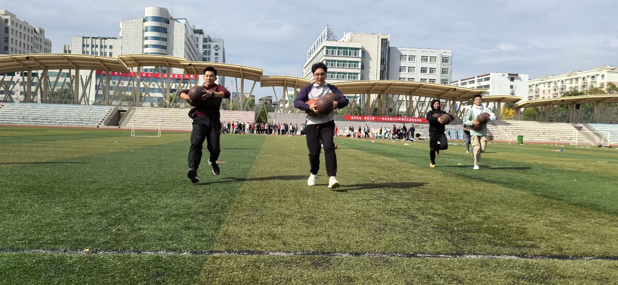 研究生趣味运动会共吸引了十四个队伍参与,设置了七个激动人心的团队项目,包括丢沙包、星球大战、撕名牌大战、排球接力跑、五人六足、跳绳接力和400米多人接力跑。
