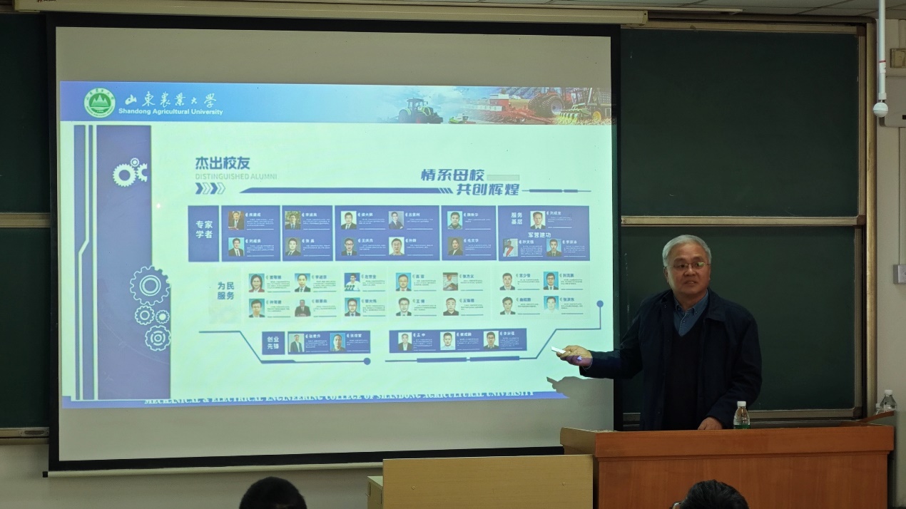 讲座伊始,张晓辉教授以“什么是专业”为切入点,结合农机学科发展史与现代农业需求,阐述了专业的核心价值。通过“智能农机维护中的数学建模”、“农业物联网中的物理原理”等实例,引导学生发现课本知识在田间地头的实际应用,并强调学习农机不仅是掌握技术,更是培养“发现问题-分析问题-解决问题”的系统思维。张教授指出,未来十年农机行业将面临“绿色化、智能化、服务化”三重变革,鼓励同学们夯实跨学科知识储备,主动拥抱产业升级浪潮,抓住机遇,实现个人高质量发展。”