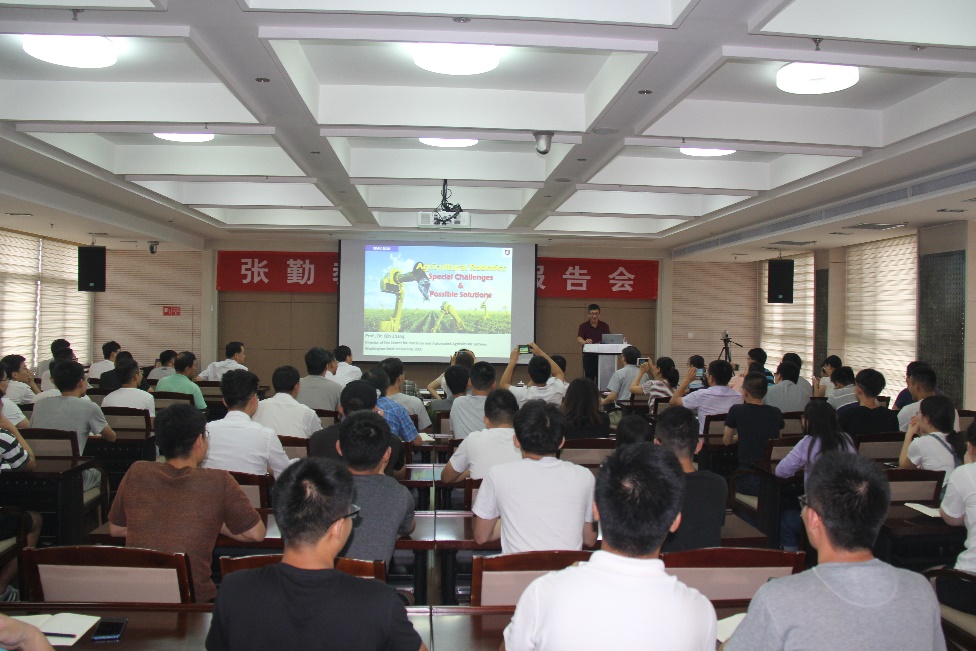 7月9日下午,美国华盛顿州立大学精细农业与自动化系统中心首席科学家张勤教授在我校学实报告厅作了题为“Agricultural Robotics: the Need, Impact and Strategy”的学术报告,机电学院领导、全院教师和研究生参加了报告会。报告会由侯加林院长主持。