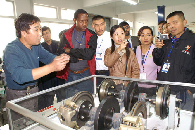 我院实验人员向来访国外学者介绍设备性能