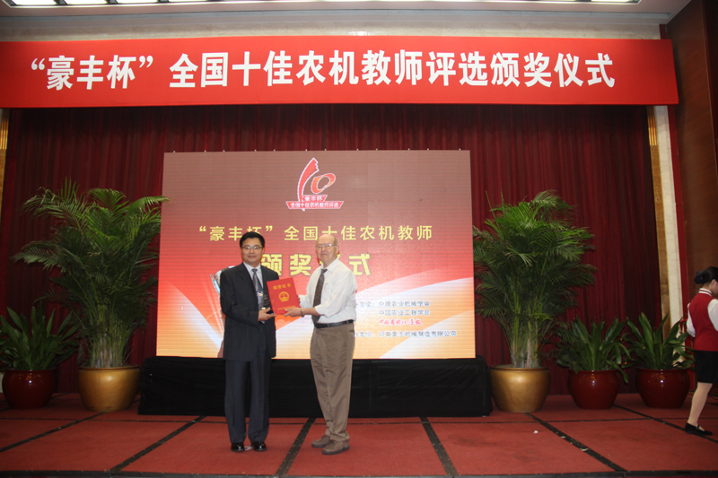 张晓辉教授荣获“豪丰杯”全国十佳农机教师荣誉称号