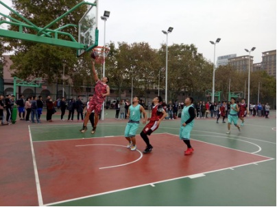 比赛开始前,机电学院篮球队队员们热情高涨,跃跃欲试。一声哨响之后机电学院与化学院间的较量正式开始。