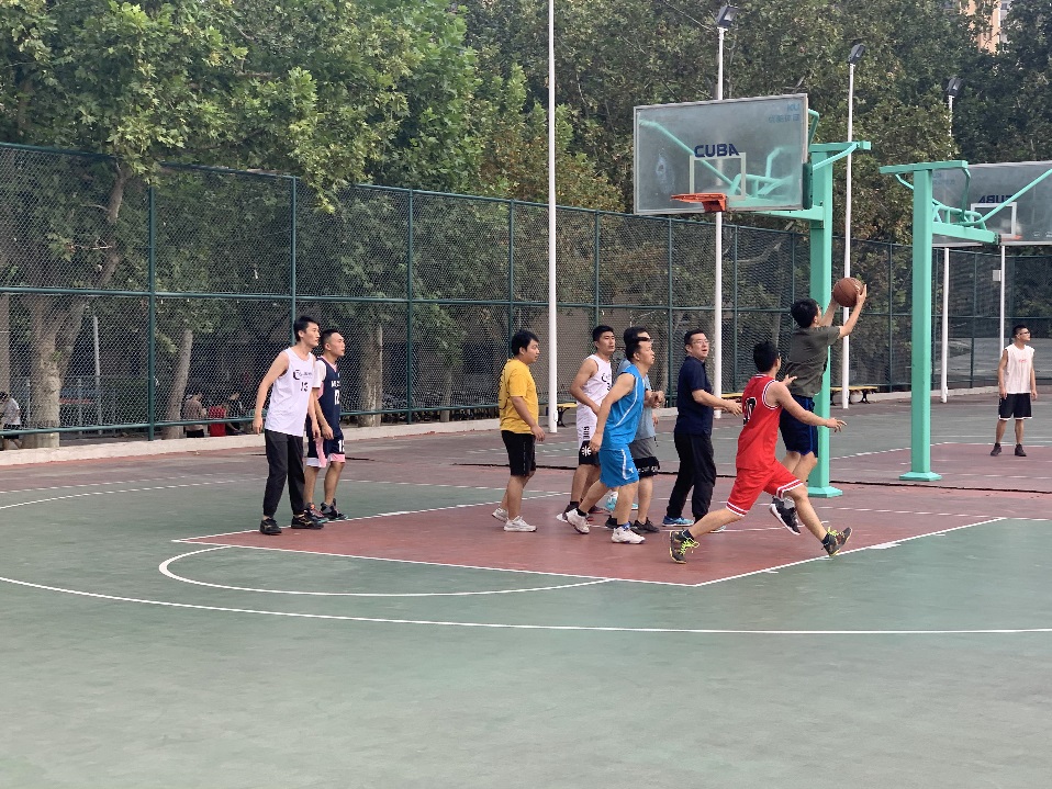 随着裁判员一声哨响,比赛正式拉开帷幕。研究生队进入状态较快,凭着默契的配合、漂亮的长传、拼抢及精准的投篮,很快取得领先;教工队在肖书记的带领下,迅速稳住阵脚,展开反扑,几番激战后,研究生队带着4分的领先优势结束上半场。