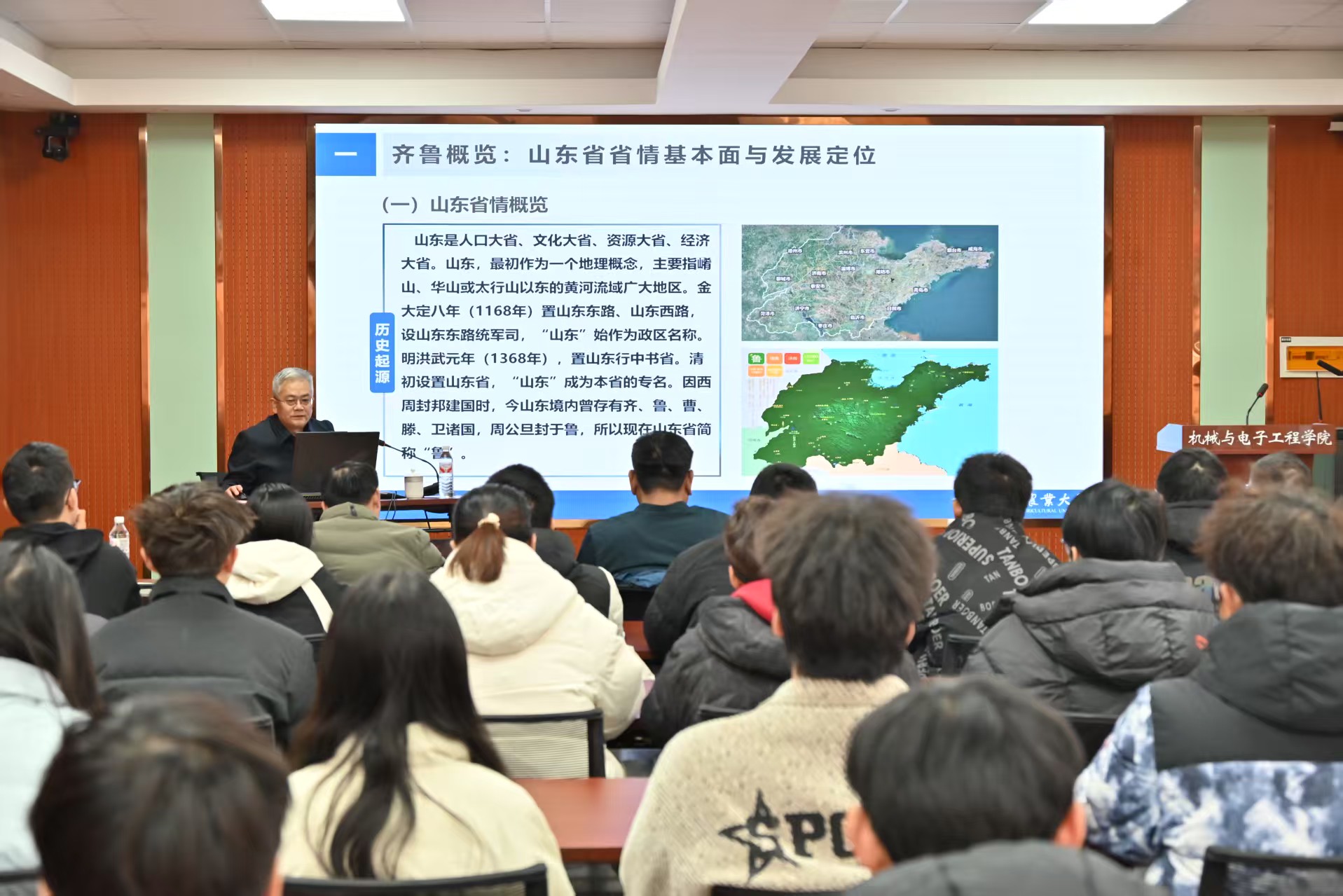 这堂思政课上,刘戈围绕山东省省情与农业发展,结合农业机械化发展实际,深入解读了乡村振兴战略下农业机械的创新方向与应用前景。他强调,机电专业学子要立足专业所长,将技术创新与农业发展需求相结合,为保障粮食安全、推动农业现代化贡献青春力量。