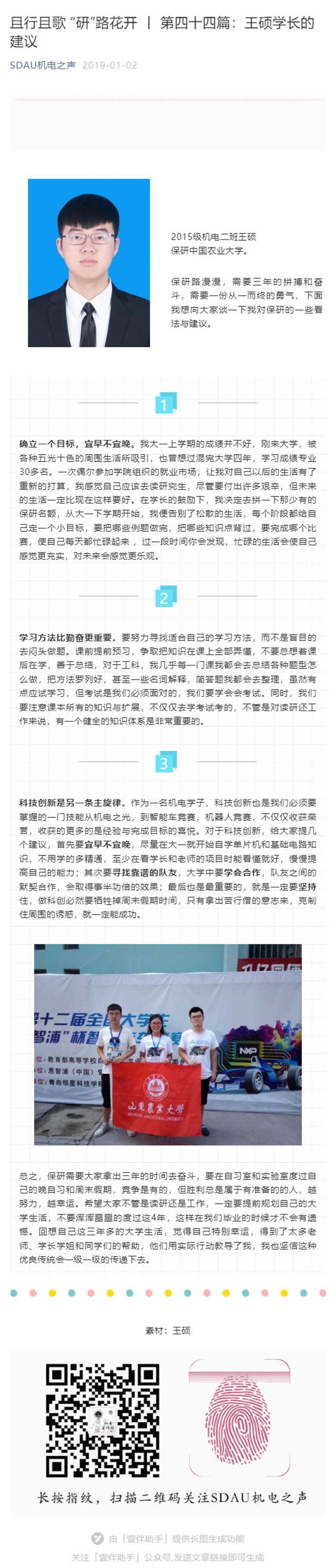 且行且歌 “研”路花开 丨 第四十四篇:王硕学长的建议
