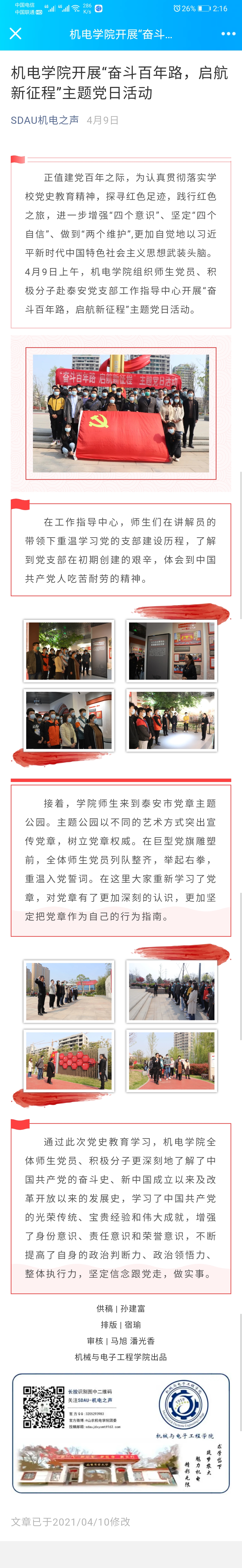 机电学院开展“奋斗百年路,启航新征程”主题党日活动