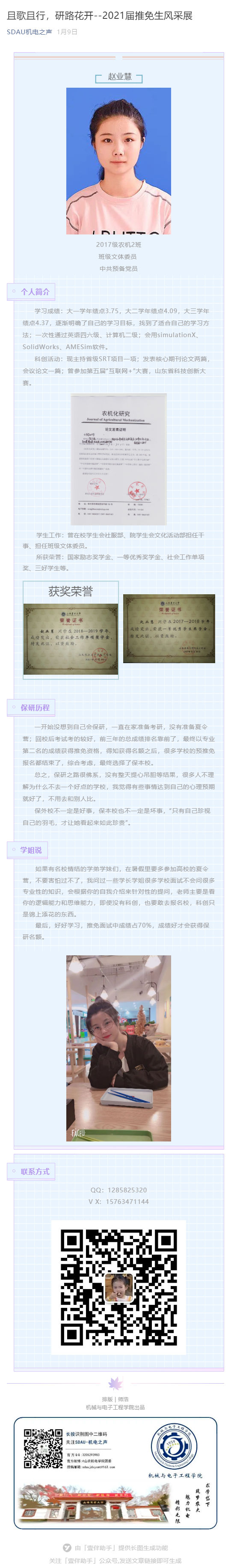 且歌且行,研路花开--2021届推免生风采展(赵业慧)