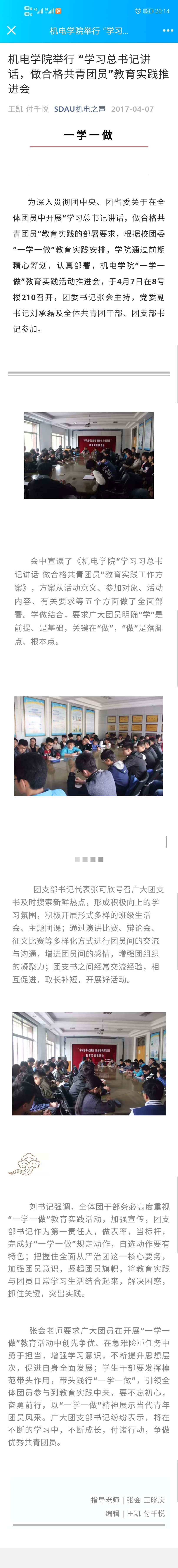 机电学院举行 “学习总书记讲话,做合格共青团员”教育实践推进会