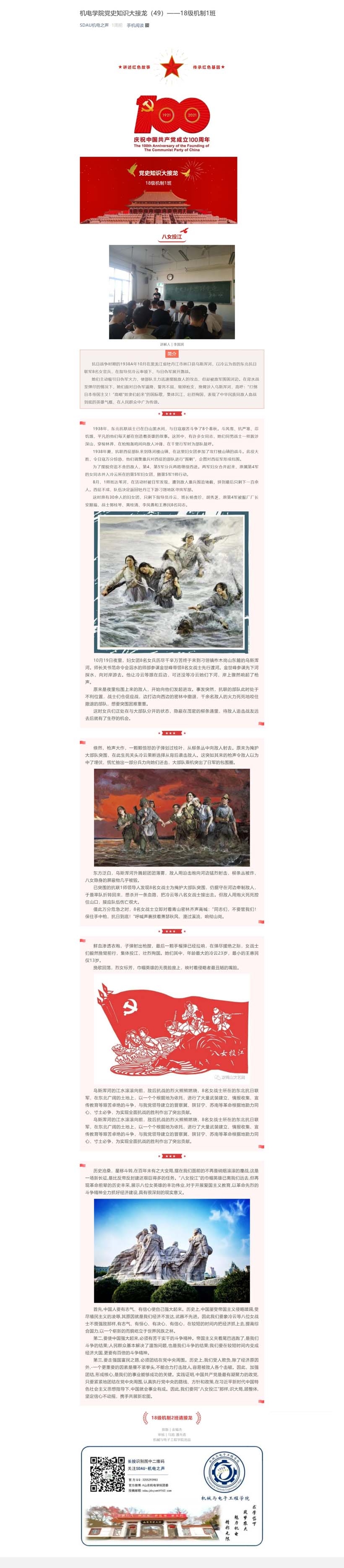 机电学院党史知识大接龙(49)——18级机制1班