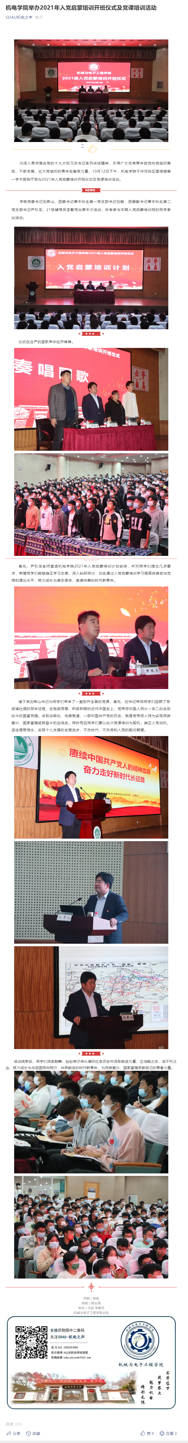 机电学院举办入党启蒙培训开班仪式及党课培训活动