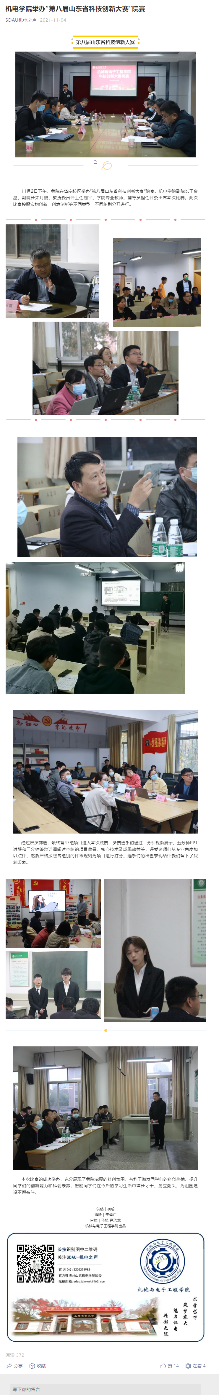 机电学院举办“第八届山东省科技创新大赛”院赛