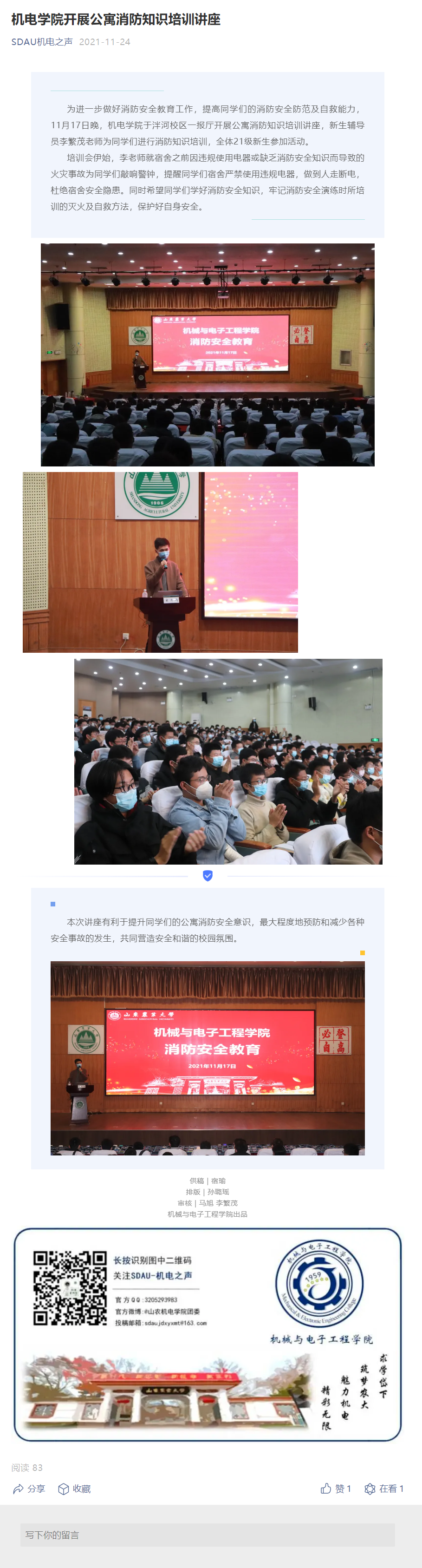 机电学院开展公寓消防知识培训讲座