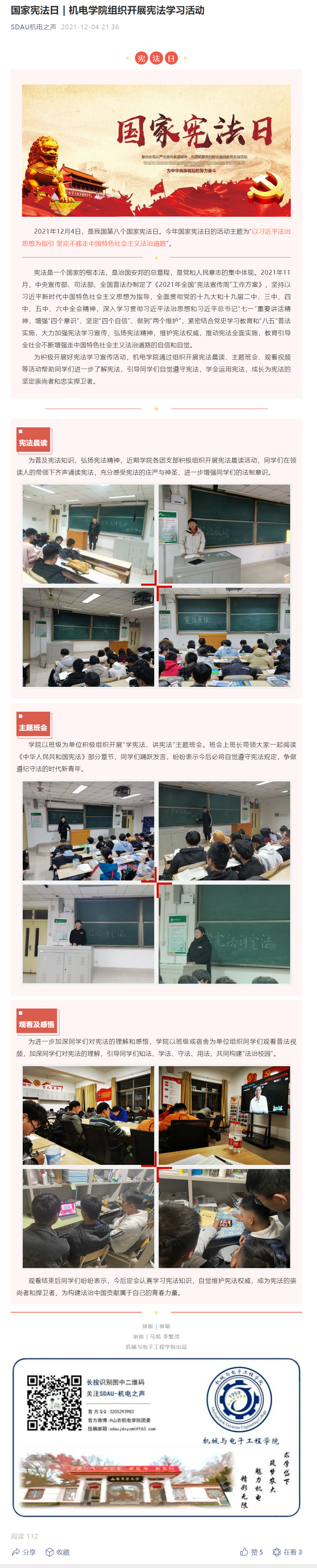 机电学院组织开展宪法学习活动