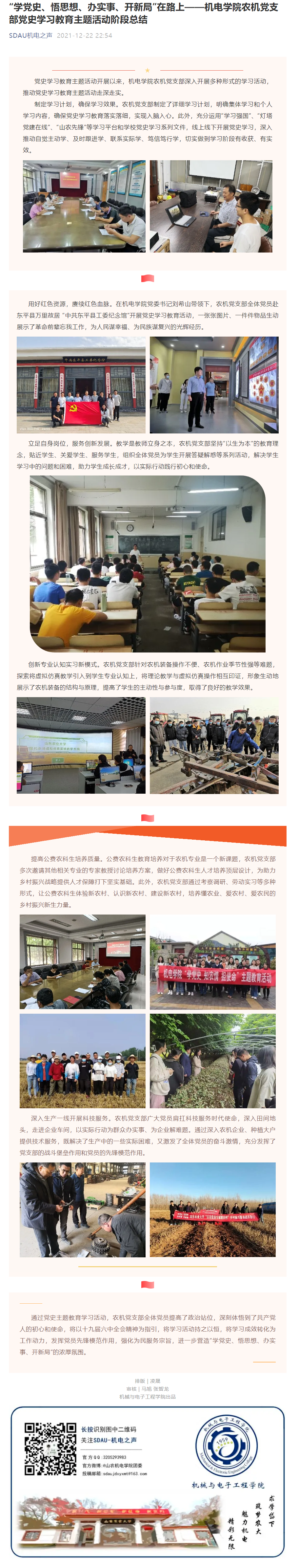 机电学院农机党支部党史学习教育阶段总结