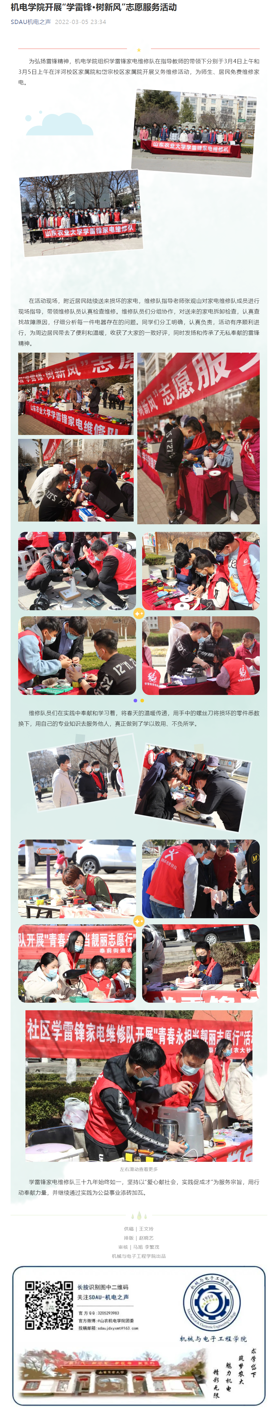 机电学院开展“学雷锋·树新风”志愿服务活动