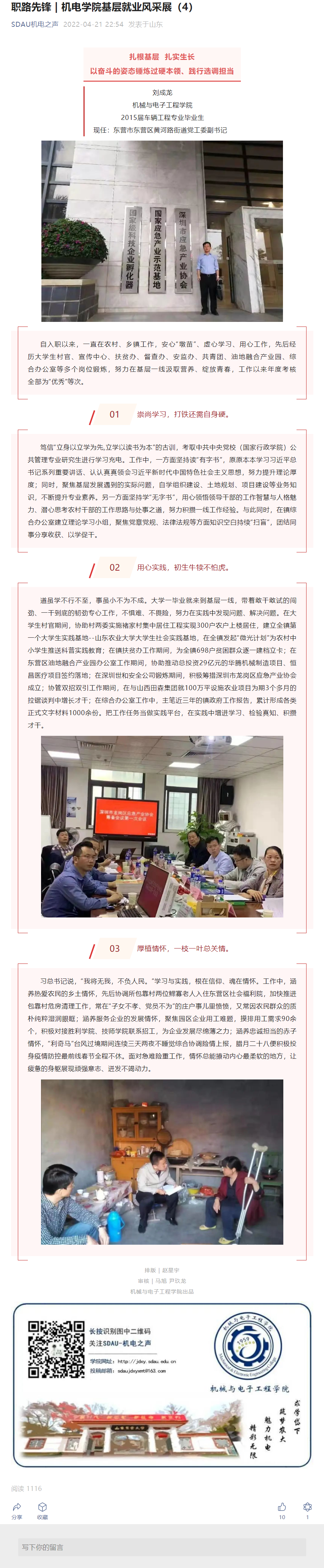 职路先锋 | 机电学院基层就业风采展(刘成龙)