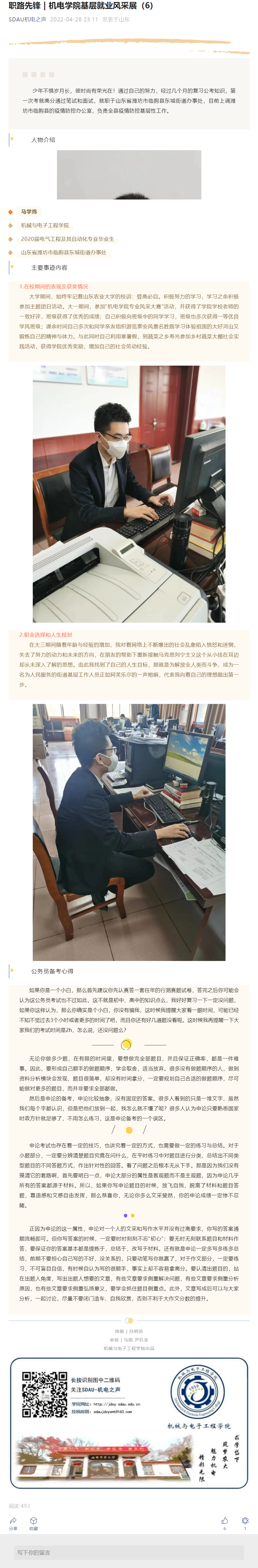 职路先锋 | 机电学院基层就业风采展(马学炜)