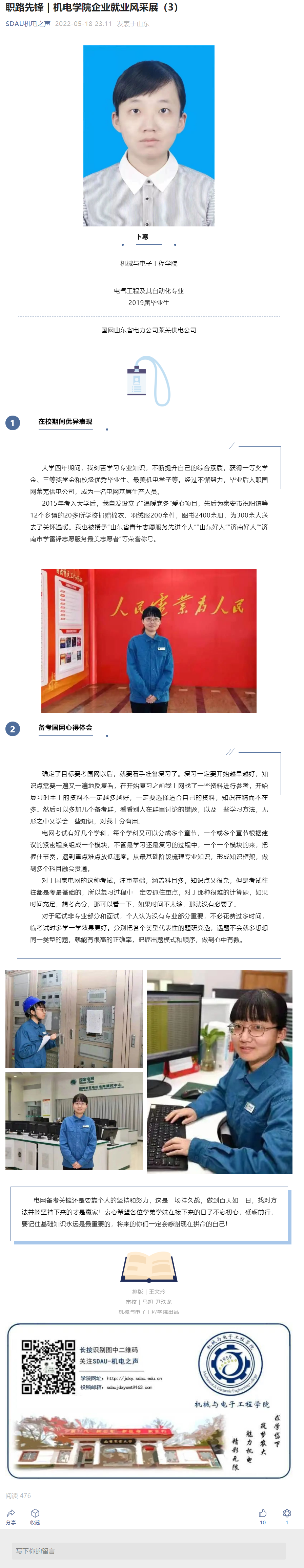 职路先锋 | 机电学院企业就业风采展(卜 寒)