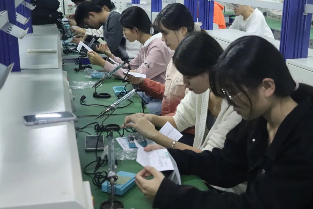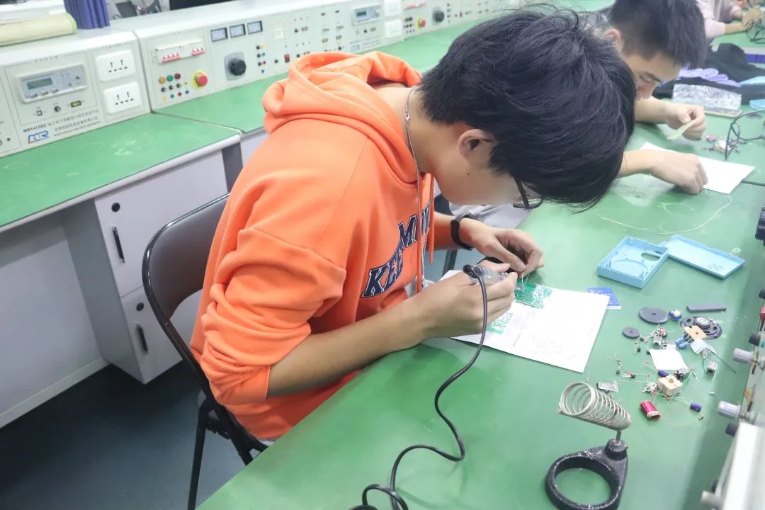 实操环节,各队员在保证安全的前提下细心操作,张观山老师及学长们悉心指导,队员们认真挑选元件并规范焊接,焊接操作逐渐熟练。活动最后,队员们清理桌面垃圾保持实验室干净整洁。