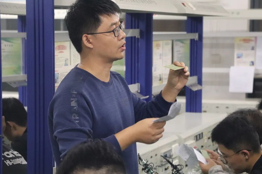 随后,张观山老师对此次收音机焊接作具体培训。他从元件入手,详细介绍其规格与焊接注意事项,并对测试电路是否连通作出说明,他强调要重视安全问题,电烙铁温度高,要规范操作避免焊接过程烫伤。各队员认真听讲,积极学习。