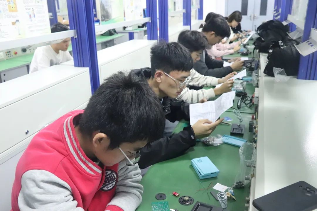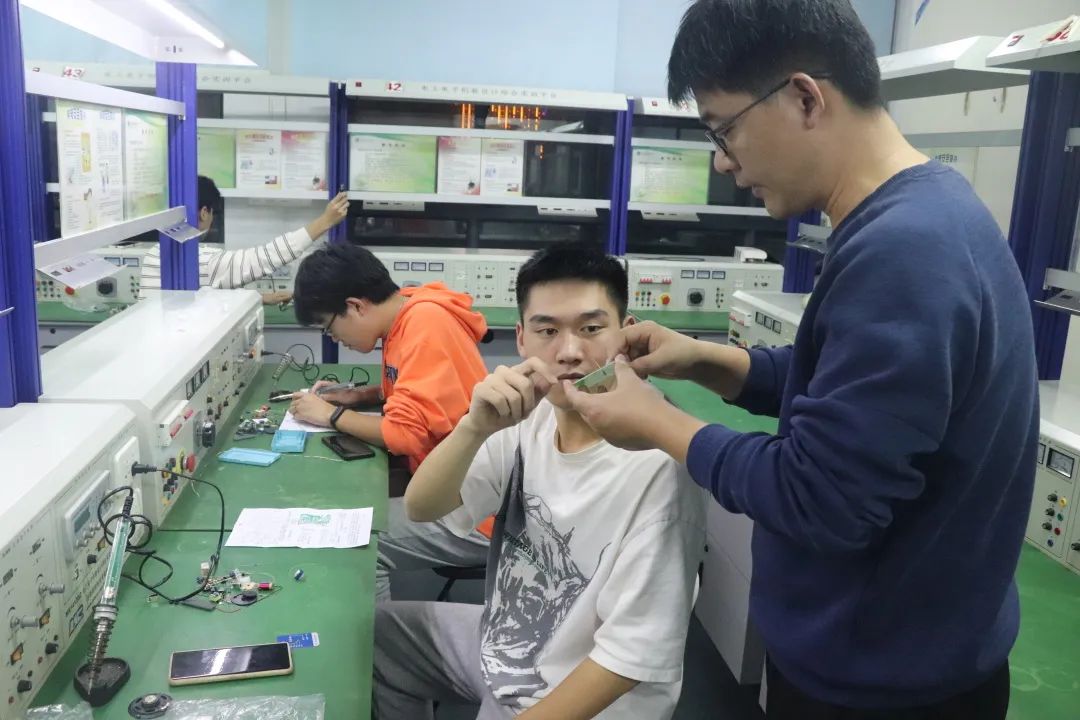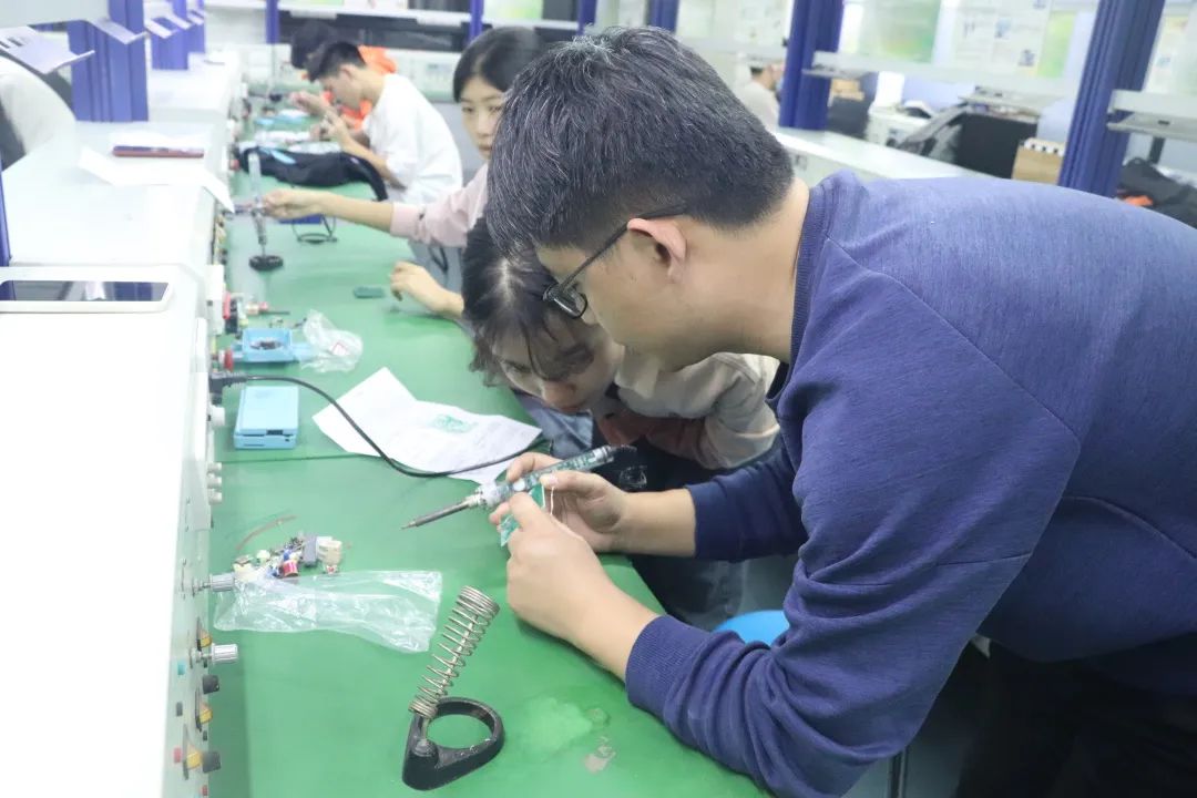 实操环节,各队员在保证安全的前提下细心操作,张观山老师及学长们悉心指导,队员们认真挑选元件并规范焊接,焊接操作逐渐熟练。活动最后,队员们清理桌面垃圾保持实验室干净整洁。