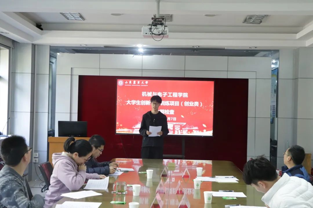 为了解创新创业训练计划项目发展进程,帮助参训同学合理调整项目推进方向,2023年4月7日下午14时,我院于岱宗校区8号楼210举行机电学院大学生创新创业训练计划项目中期检查。担任中期考核的评委老师有:教授委员会主任刘平老师,电气系主任刘双喜老师,机械中心主任李玉道老师,团委书记刘敏老师,农业机械化系张宏建老师,双创辅导员李繁茂老师。